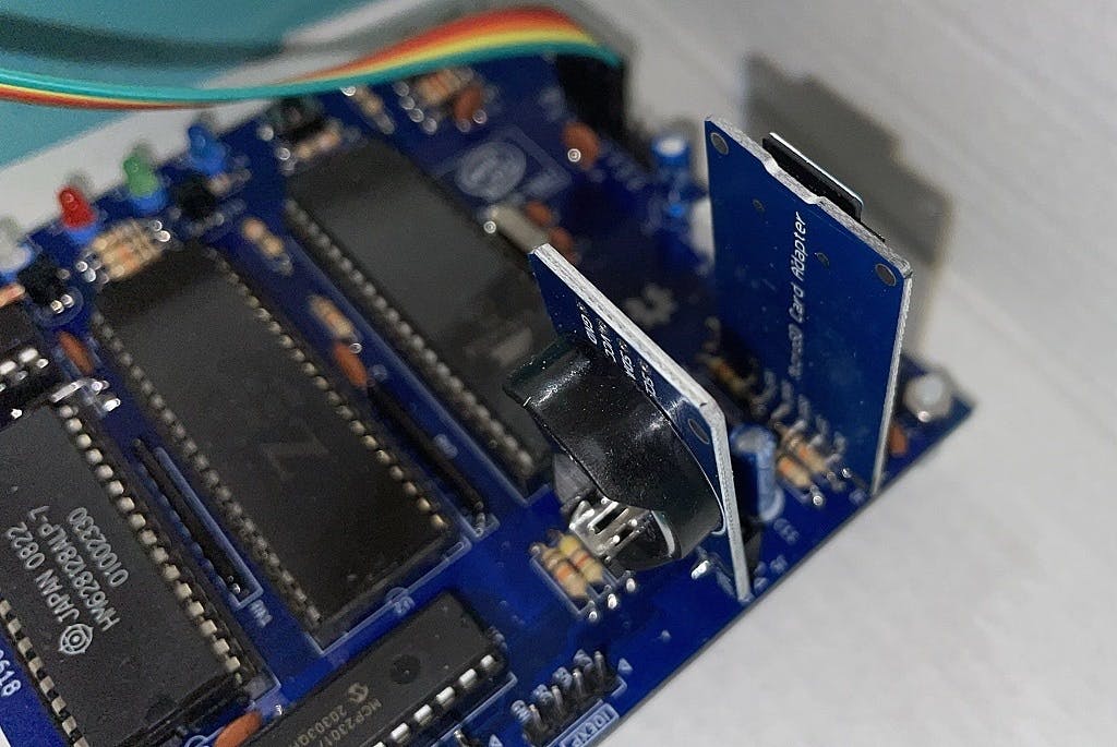 Heb je alles eenmaal in huis en opgebouwd voor je staan, dan is het zaak om de Z80-MBC2 aan de praat te krijgen. In ons pakket stond alle benodigde software al op een meegeleverd micro-SD geheugenkaartje. Dat prik je in de – bij ons eveneens meegeleverde maar ook los verkrijgbare – kaartlezer. En die module als geheel prik je dan weer op het systeembord. Daar is ook plaats voor een ofwel in een pakket meegeleverde ofwel los aan te schaffen real time klokmodule. Beide onderdelen kosten een appel en een ei, dus adviseren we je om die zeker ook even te bestellen.