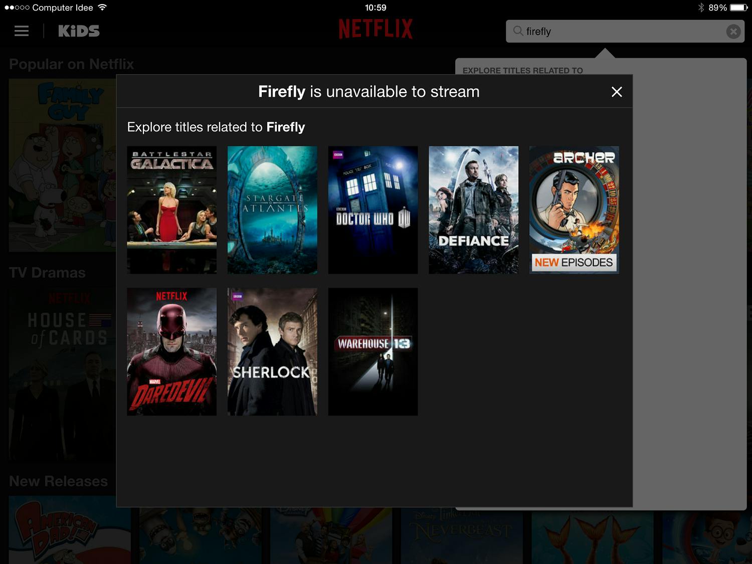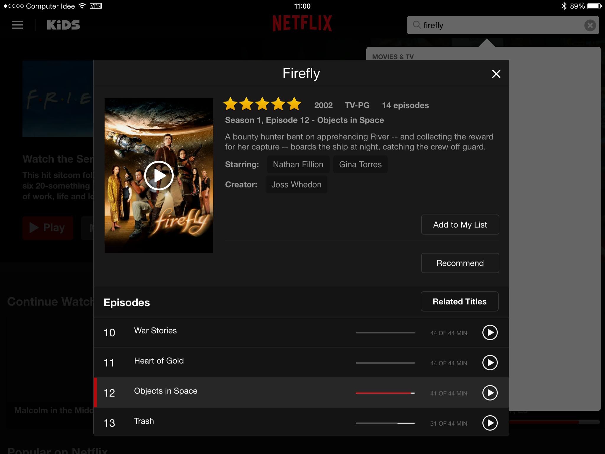 In het Amerikaanse Netflix-aanbod is de cult-hitshow Firefly niet te zien.Met een VPN kun je de show via het Amerikaanse aanbod wél kijken.