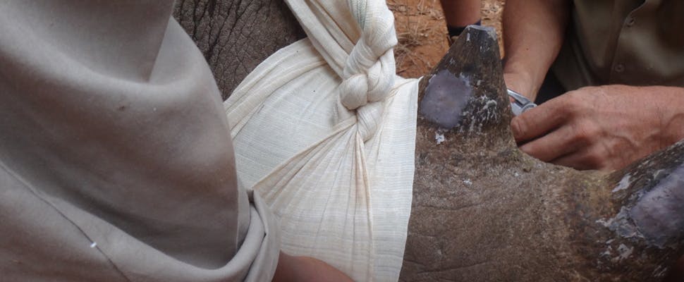 Bedreigde neushoorns te volgen met sensor in hoorn