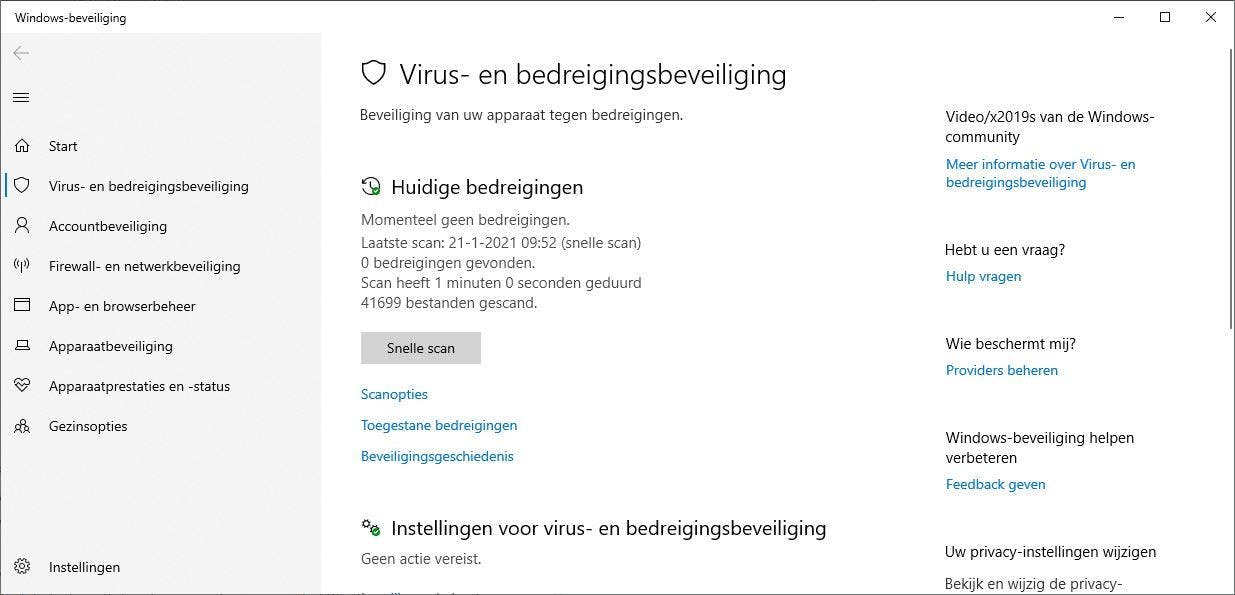 Zoek je een beveiligingsprogramma dat alleen malware en indringers bestrijdt, dan kun je prima met gratis software uit de voeten. Op Windows 10 is standaard al het onderdeel Windows-beveiliging aanwezig. Na een moeizame beginperiode presteert deze toepassing op het gebied van veiligheid tegenwoordig uitstekend. Niet voor niets kent het onafhankelijke onderzoekslab AV-TEST in zijn laatste testresultaten de maximale score aan het Windows-programma toe.