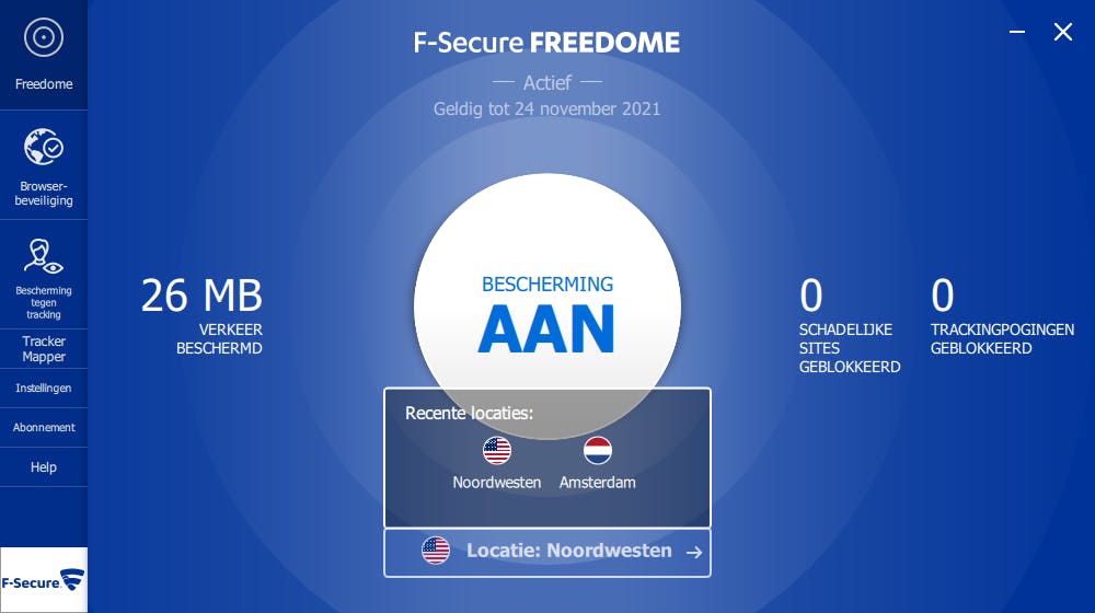 Je kunt natuurlijk ook rechtstreeks bij F-Secure aankloppen. F-Secure Total bestaat uit drie afzonderlijke programma’s, namelijk antivirussoftware, een wachtwoordmanager en een vpn-dienst. Met name laatstgenoemde optie is interessant, aangezien er geen datalimiet van toepassing is en je zelf een serverlocatie kunt kiezen. Deze laagdrempelige vpn-functie bevalt in de praktijk uitstekend.