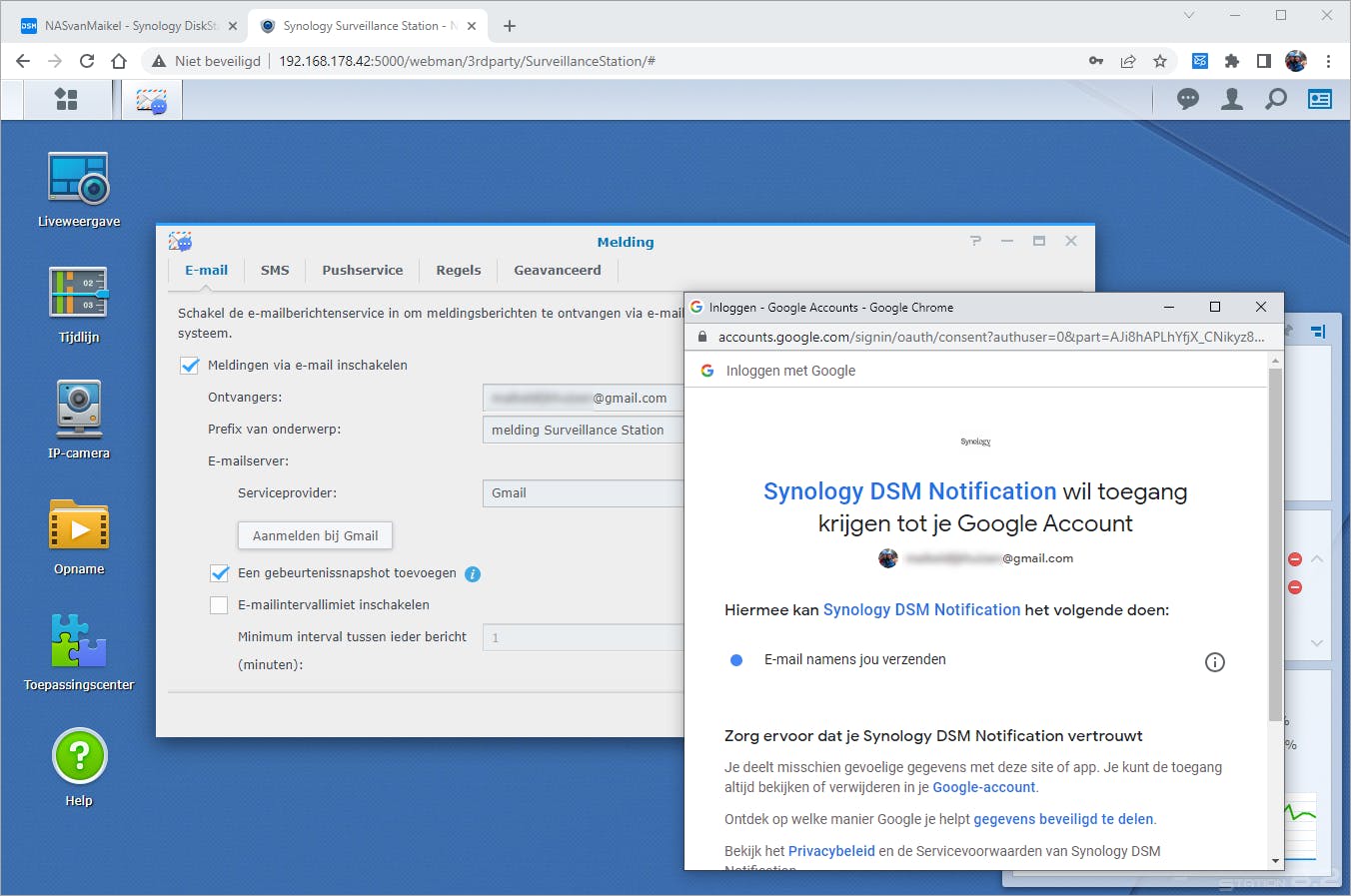 Bewakingscamera op Synology-NAS