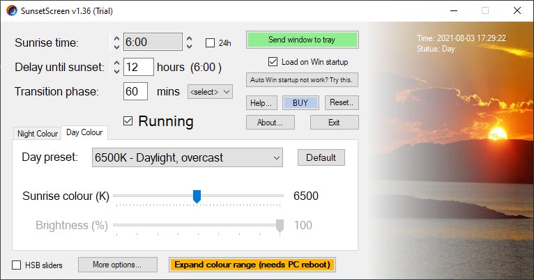 Een veel betere oogbescherming is de betaalde versie van deze titel die de temperatuur en helderheid wel soepel en fijngeregeld aanpast. Je kunt ook profielen aanspreken om van een film te genieten, om in Office te werken of om bijvoorbeeld te lezen.
