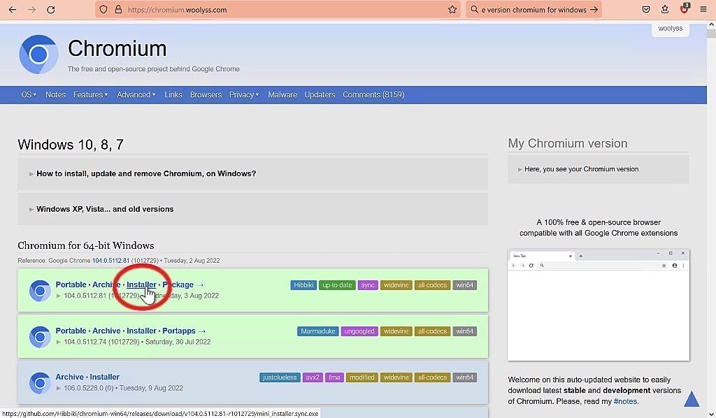 Het is Chromium waar de privacybewuste gebruiker die om wat voor reden ook wel een Chrome-compatibele browser wil, zich op moet focussen. Nu bestaat het Chromium-project zelve hoofdzakelijk uit de engine, plus vaak instabiele ‘nightly builds’ waar de gemiddelde niet-nerd niet vrolijk van wordt. Gelukkig zijn er ook stabiele builds van een op Chromium gebaseerde browser te vinden op https://chromium.woolyss.com/. Voor zo ongeveer elk denkbaar besturingssysteem om precies te zijn.