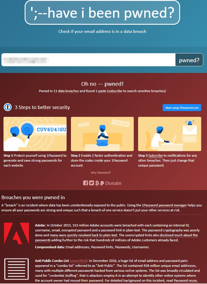 Soms krijg je als gebruiker van zo’n dienst daarvan een expliciete melding, maar vaak ook niet. Daarom doe je er goed aan af en toe zelf te controleren of hackers ook jouw accountgegevens te pakken hebben gekregen.