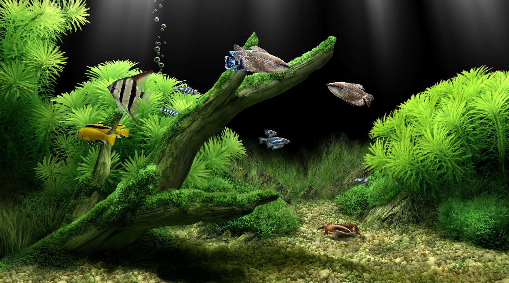 Ha, daar is natuurlijk de screensaver waarbij je scherm een aquarium wordt en waar je de visjes af en toe kunt voeren. Dit is een klassieker, maar wel een bijzonder mooie waarbij de visjes hyperrealistisch over het scherm bewegen. De screensaver is ontworpen door een effectkunstenaar die een Oscar heeft gewonnen voor special effects in films. Je kunt de demo downloaden, want de volledige versie kost 19,95 dollar en 20 procent gaat naar het goede doel. Voor dat geld krijg je 27 soorten vissen en een krab die de bodem schoonmaakt. Er is ook een macOS-versie, maar die werkt niet op het laatste besturingssysteem van Apple.