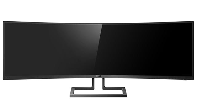 Deze ultrawide-monitor van 49 inch (124 centimeter beelddiagonaal!) van Philips is een aanwinst voor elk zichzelf respecterend kantoor. Het is misschien even slikken als de doos met ruim een meter beeldscherm binnenkomt, maar nadat je je bureau hebt opgeruimd ben je klaar voor de ultieme werkopstelling. Voor net onder 900 euro krijg je dit gebogen scherm met een resolutie van 5120 × 1440 pixels. Dat is alsof je twee WQHD-schermen (2560 × 1440 pixels) naast elkaar zet.
