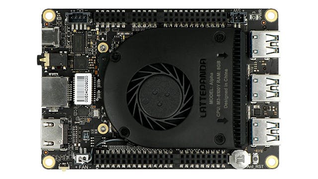 Vanwege alle functionaliteit is de LattePanda Alpha 864s wel iets omvangrijker dan de overige besproken singleboardcomputers. De behuizing meet namelijk 11,5 × 7,8 centimeter. Een koelventilator en voedingsadapter zijn bij dit prijzige product inbegrepen.
