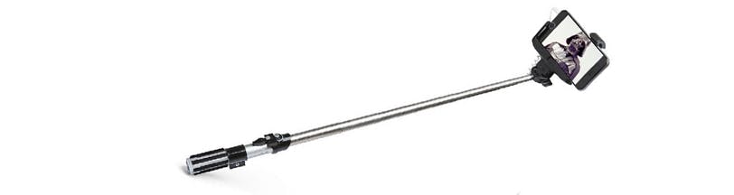 Als je heel, heel goed kijkt, zie je dat het handvat van deze selfiestick er uit ziet als die van een lightsaber. Tja.