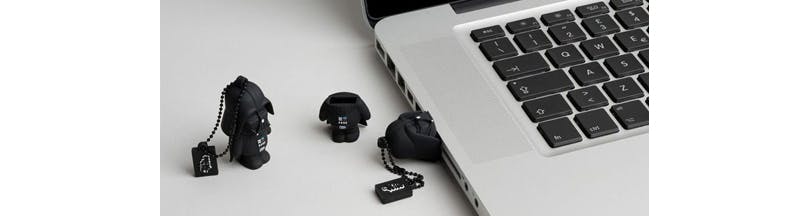 Tot slot: Darth Vader oogt een stuk minder gevaarlijk in usb-stickvorm. Overigens ook in Storm Trooper-variant verkrijgbaar.