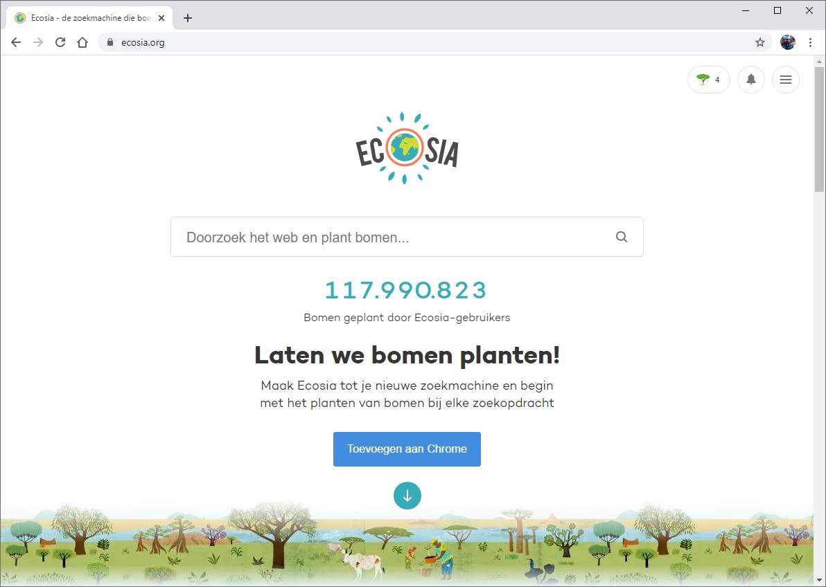Ecosia doet daarvoor graag iets terug, want deze Nederlandstalige zoekmachine gebruikt het overgrote deel van zijn inkomsten om nieuwe bomen te planten. Dit gebeurt wereldwijd en het zijn er inmiddels al meer dan 120 miljoen! Hoe meer mensen via Ecosia op internet zoeken, hoe meer inkomsten deze webdienst genereert.