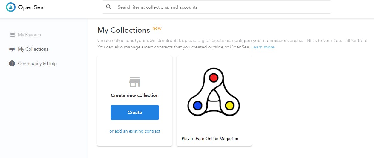 OpenSea collectie aanmaken