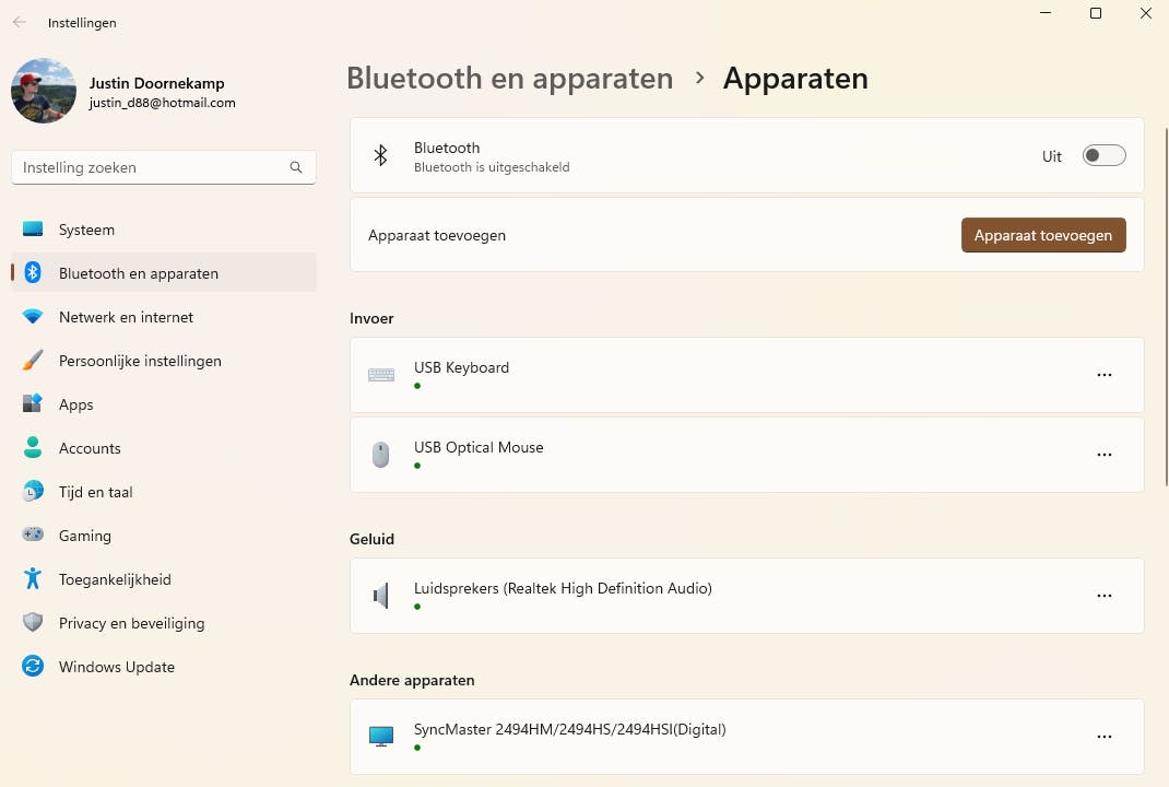 Weet je niet zeker of jouw laptop of computer bluetooth ondersteunt, dan kun je dat gemakkelijk controleren door in de instellingen van Windows 10 of 11 te zoeken naar Bluetooth en apparaten. Boven in dit menu vind je de optie Bluetooth, die je hier kunt in- of uitschakelen. Vanuit dit menu kun je eventueel ook bluetooth-apparaten aan je pc of laptop koppelen.