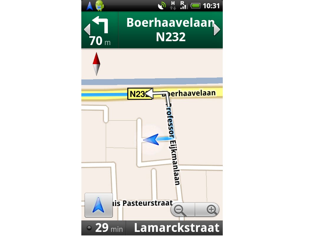 Google heeft de navigatiefunctie van Google Maps met gesproken aanwijzingen, nu ook in Nederland ingevoerd. De mogelijkheid zat al langer ingebakken in Android-telefoons maar werkte tot nu toe niet.Wie nu de navigatiefunctie van Android start op zijn Androidtelefoon, krijgt de mogelijkheid een adres in te typen of een adres te kiezen uit de contacten of uit de met ster gemerkte lokaties in Google Maps. Na het berekenen van de route, worden Nederlandstalige gesproken aanwijzingen gegeven.Vorig jaar werd de gratis navigatiefunctie van Google Maps al ingevoerd in de Verenigde Staten en eerder dit jaar in het Verenigd Koninkrijk. Eerder waren er al geruchten dat het ook bij ons snel zou worden ingevoerd.Google Maps navigatie is een online gps navigatiesysteem voor smartphones. De getoonde informatie komt via benodigde online internetverbinding. In het buitenland kan dat hoge roamingkosten veroorzaken. Google Maps Navigatie kan in de Android marktet worden gedownload en is geschitk voor Androidtelefoons vanaf Android 1.6Behalve op kaarten kan de route ook worden weergegeven op satellietbeelden of met Google Street View beelden. Meer informatie vindt u hier.