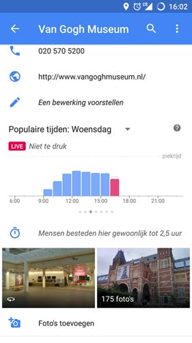 De informatie is te vinden in het menu dat tevoorschijn komt zodra je in Maps op een plek (zoals een winkel) tikt. Je ziet daar zaken als contactinformatie, maar ook de drukte zodra je wat verder omlaag scrolt.