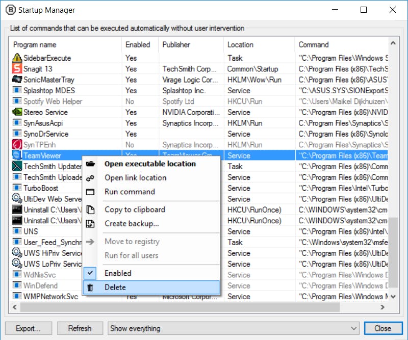 Sommige programma’s en services starten automatisch met Windows op. Deze opstart-items zorgen meestal voor een flinke vertraging. Zeker wanneer je een applicatie niet dagelijks gebruikt, is automatisch opstarten zonde. BCUinstaller laat een duidelijk overzicht met opstart-items zien. Ga in het menu naar Tools / Open Startup Manager. Op de meeste systemen is de lijst nogal fors. Wil je een opstart-item uitschakelen, klik dan met de rechtermuisknop op een titel. Bevestig vervolgens met Delete en Remove. Overigens heb je niet per se een hulpprogramma nodig om opstart-items uit te schakelen. Open vanuit het Startmenu van Windows 10 maar eens het hulpprogramma Taakbeheer. Via de tabbladen Opstarten en Services bekijk je welke opstart-items er allemaal actief zijn, waarbij je ze desgewenst één voor één uitschakelt.