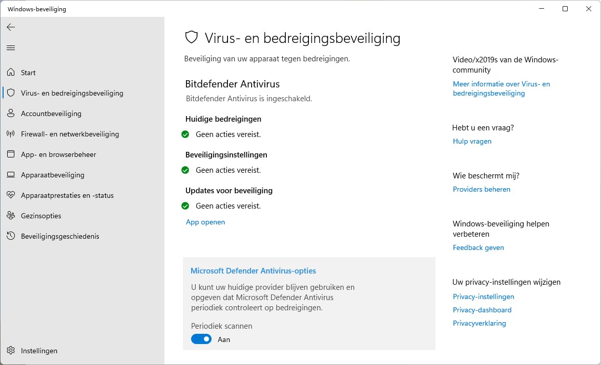 Het scant de pc zowel realtime, dus in de vorm van een achtergrondproces, als on-demand. En de ransomware-bescherming kan specifieke bestanden, mappen en delen van het geheugen extra beveiligen. Samen met de andere onderdelen in de Windows-beveiliging – zoals firewall- en netwerkbeveiliging, accountbeveiliging, app- en browserbeheer en exploit-protection – beschikt Windows hiermee over een behoorlijk compleet alternatief voor menig antivirus- en zelfs groter securitypakket.