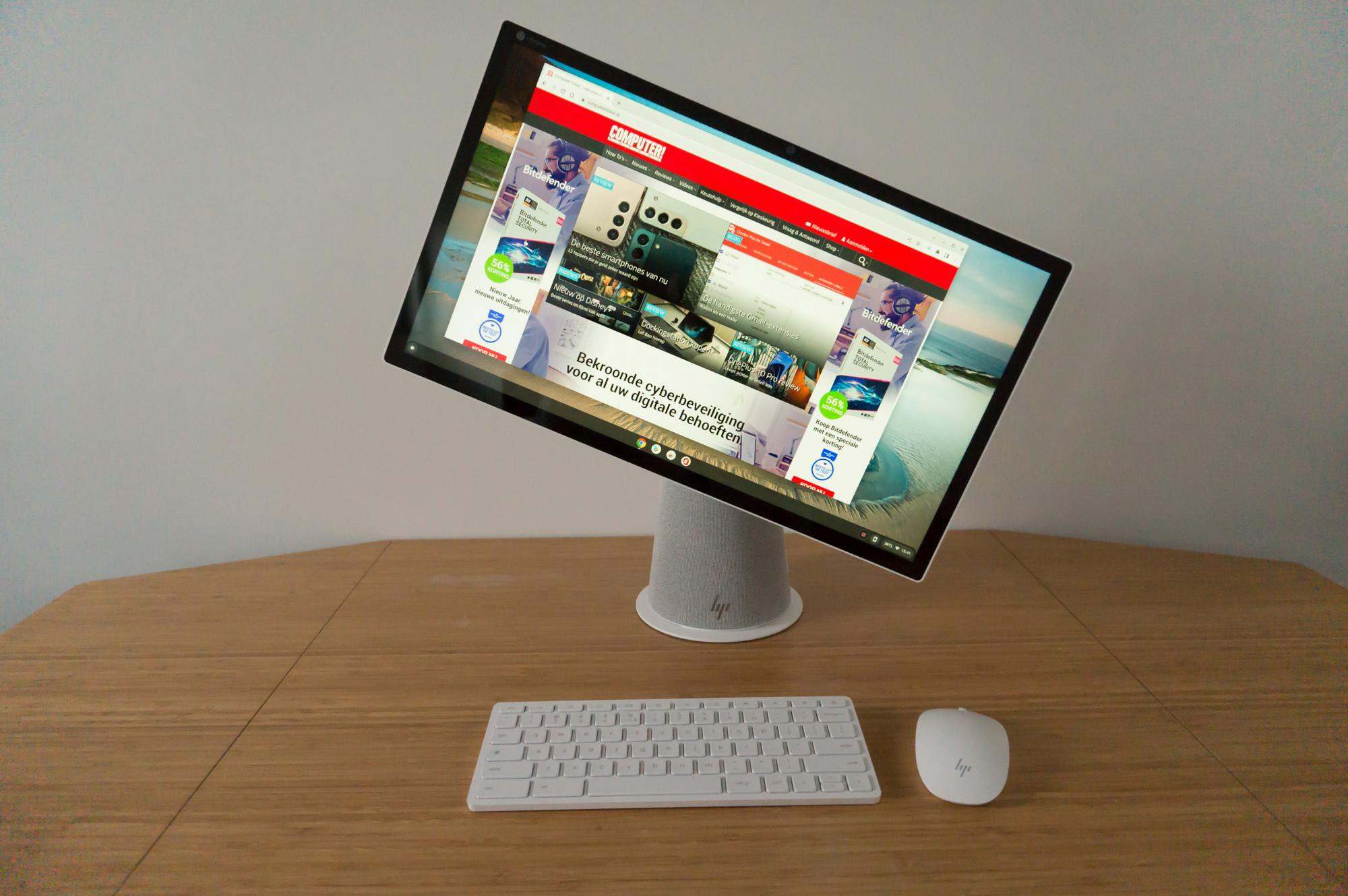 Helaas is het scherm niet in hoogte verstelbaar en voor mij is het scherm te laag gepositioneerd om op mijn bureau ergonomisch te werken. Het scherm verticaal draaien en kantelen kan wel, maar de base is zo groot dat een hoogteverstelling in de normale horizontale houding niet zou misstaan. Het lijkt er wel op dat HP deze Chromebase vooral voor kinderen heeft ontworpen aangezien er op de productpagina uitgebreid stilgestaan wordt bij digitale lessen.