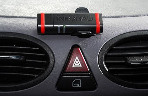 Voorbij is de tijd dat u met een grote radarverklikker op uw dashboard moest rondrijden om boetes te voorkomen. De K1 is niet groter dan een usb-stick en werkt met heen heel ander principe (dat wél volledig legaal is): aan de hand van een database met flitspaallocaties.Door het kleine formaat is de Inforad K1 makkelijk op zak te steken. U bevestigt het aan het dashboard waar hij 5 uur onafgebroken en zonder opladen z'n werk doet. Intern is een SiRFstar III gps-chipset aanwezig, die uw positie bepaalt. Aan de hand van de Inforad-flitspaaldatabase wordt bepaald of u in de buurt van een gevarenzone bent. De clip is te bevestigen op vrije zones achter een thermische voorruit of op het dashboard. Aan de hand van geluidssignalen hoort u of u bij een flitspaal, trajectcontrole, gevaarlijke bocht of oversteekplaats in de buurt bent. Klanten krijgen gedurende de levensduur van het apparaat gratis updates.