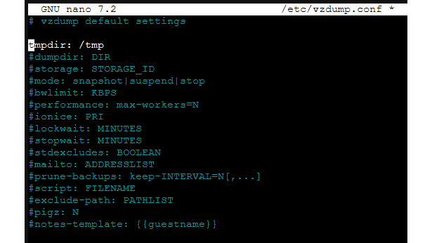 Een back-up van een unpriviliged container naar een netwerkshare (zoals NFS) vereist overigens een kleine aanpassing. Open daarvoor de shell en bewerk het bestand vzdump.conf met de opdracht: