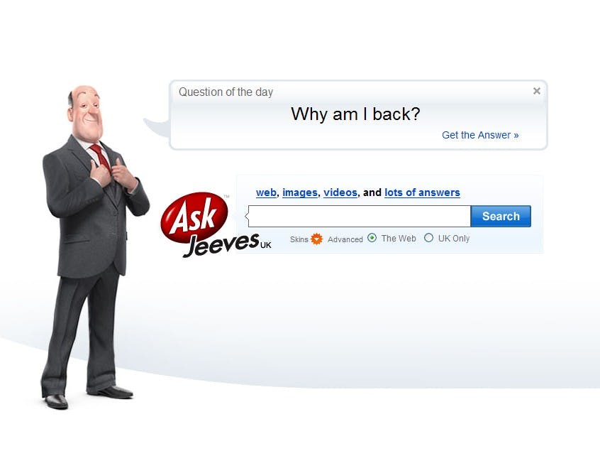 Jarenlang was butler Jeeves het gezicht van de zoekdienst Ask.com (die destijds AskJeeves.com heette). Maar om de concurrentie met Google aan te kunnen blijven gaan werd in 2006 besloten tot een facelift van de site, waarbij ook de butler sneuvelde.
