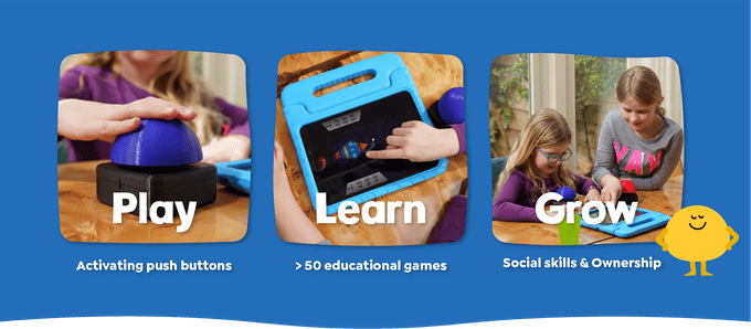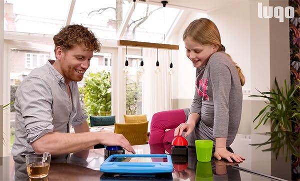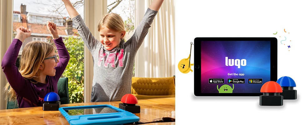 Voor 109 euro kun je nog tot en met woensdag 12 mei op crowdfunding-platform Kickstarter een Luqo Home-pakket bestellen. Daar zitten tien educatieve spellen in en twee Luqo-drukknoppen. Die grote, kleurige drukknoppen sluit je via Bluetooth aan op een tablet.