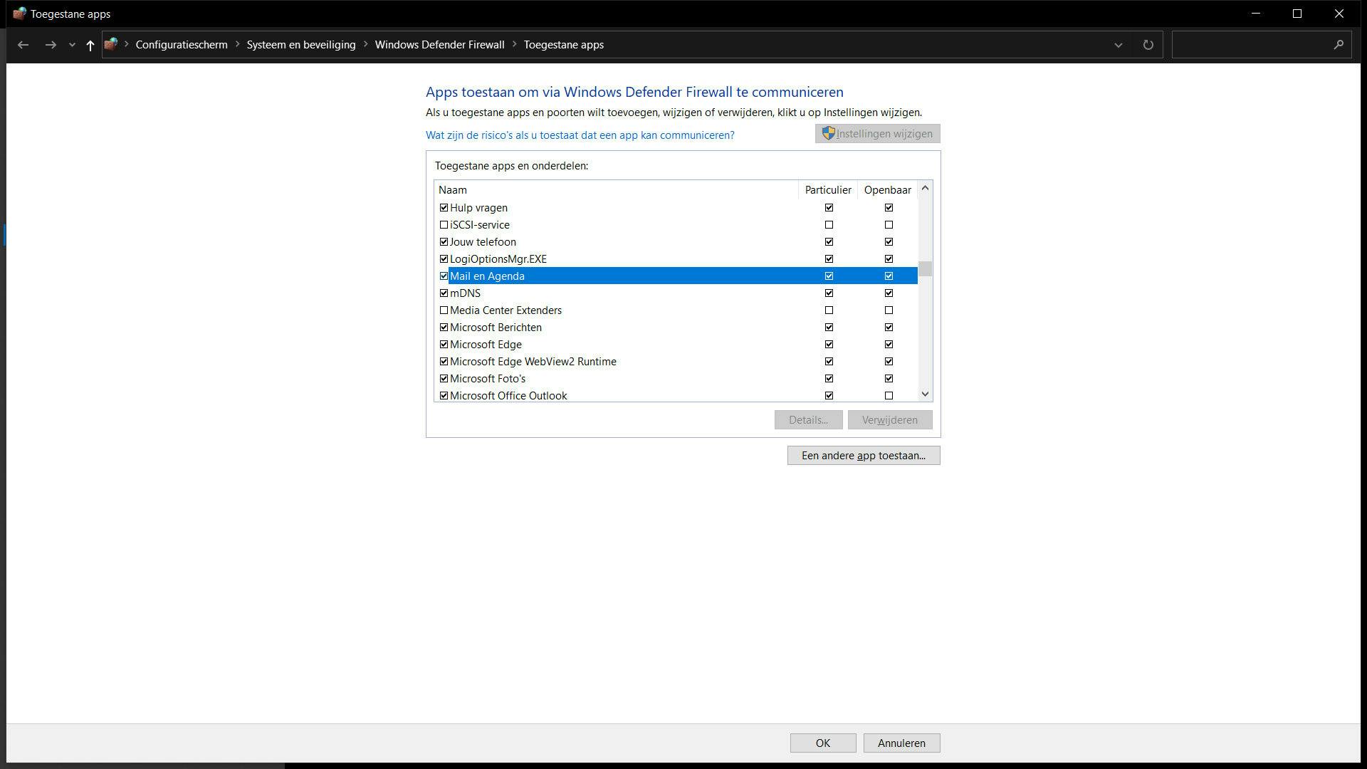 Tot slot kan het helpen de Mail-app toegang te verlenen via Microsoft Defender. Dat doe je als volgt: