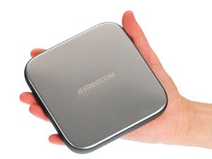 Freecom komt, naar eigen zeggen, met ’s werelds eerste vierkante harde schijf. Het design doet erg aan dat van Apple denken en past dan ook mooi bij een iMac of Macbook Pro.