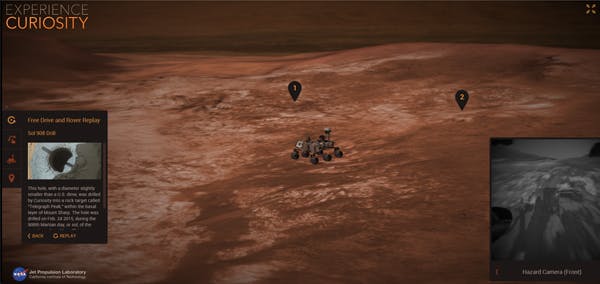 De andere site heet Experience Curiosity en daarmee kun je zelf het gelijknamige, onbemande voertuig besturen. Volgens NASA geeft dit een accuraat beeld van hoe het leven op Mars er voor Curiosity uitziet. Je bent vrij om tijdens het rijden te wisselen tussen de verschillende camera's van het voertuig. Onderweg kom je langs bezienswaardigheden die door Curiosity zelf zijn gefotografeerd en lees je daar leuke weetjes over.