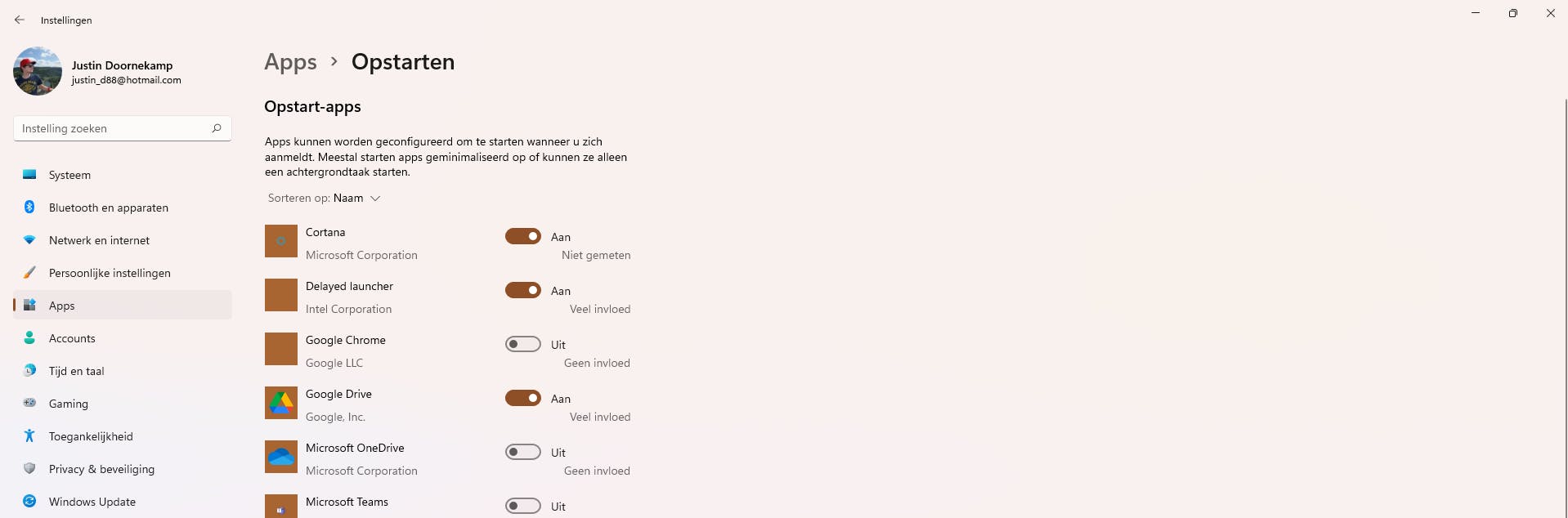 Opstartprogramma's wijzigen in Windows 11