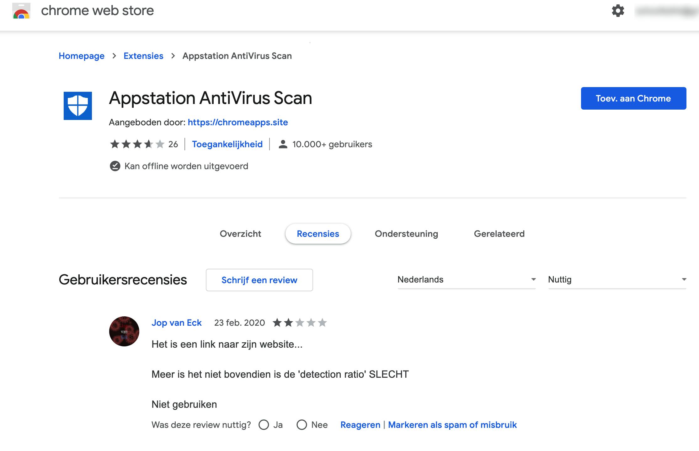Ook een antivirus-extensie voor Chrome is zo nuttig als een schietstoel in een helikopter. Ieder zichzelf respecterend antiviruspakket controleert je webverkeer om je machine veilig en gezond te houden. Er is geen speciale browserextensie nodig om daar nog een schepje bovenop te doen. We merken dat antivirusfabrikanten toch op de proppen komen met extensies die helaas je browsergegevens verzamelen, je startpagina wijzigen of een zoekmachine opdringen. Je pc is niet beter beveiligd door zo’n extensie van een antivirusbedrijf. Weg daarmee.