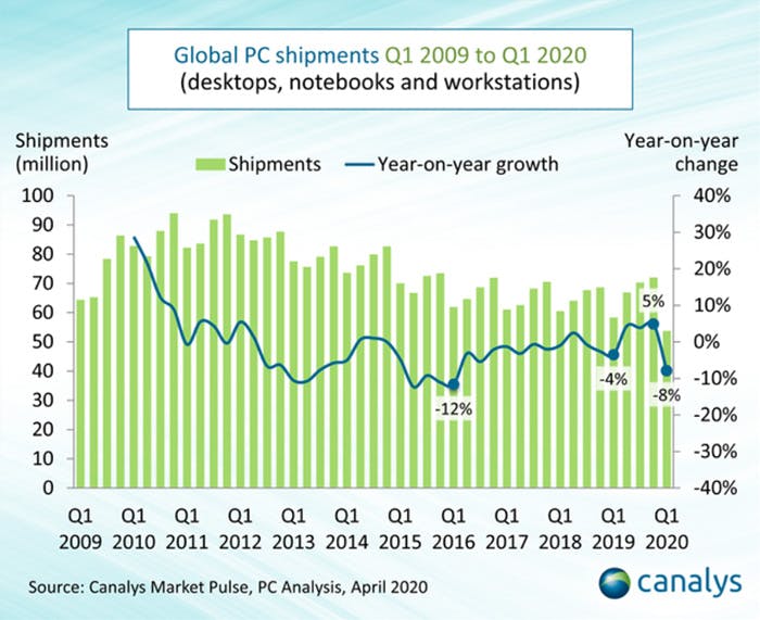 Zodra het virus meer onder controle is en de markt weer op gang komt, verwacht Canalys niet dat dit zomaar bijtrekt. Juist omdat er in het eerste kwartaal van dit jaar zoveel computers zijn gekocht, veelal op basis van voorraad die er nog was, is er in de rest van het jaar minder behoefte aan. Daarnaast is er veel financiële onzekerheid, consumenten zijn minder geneigd in dure spullen te investeren.