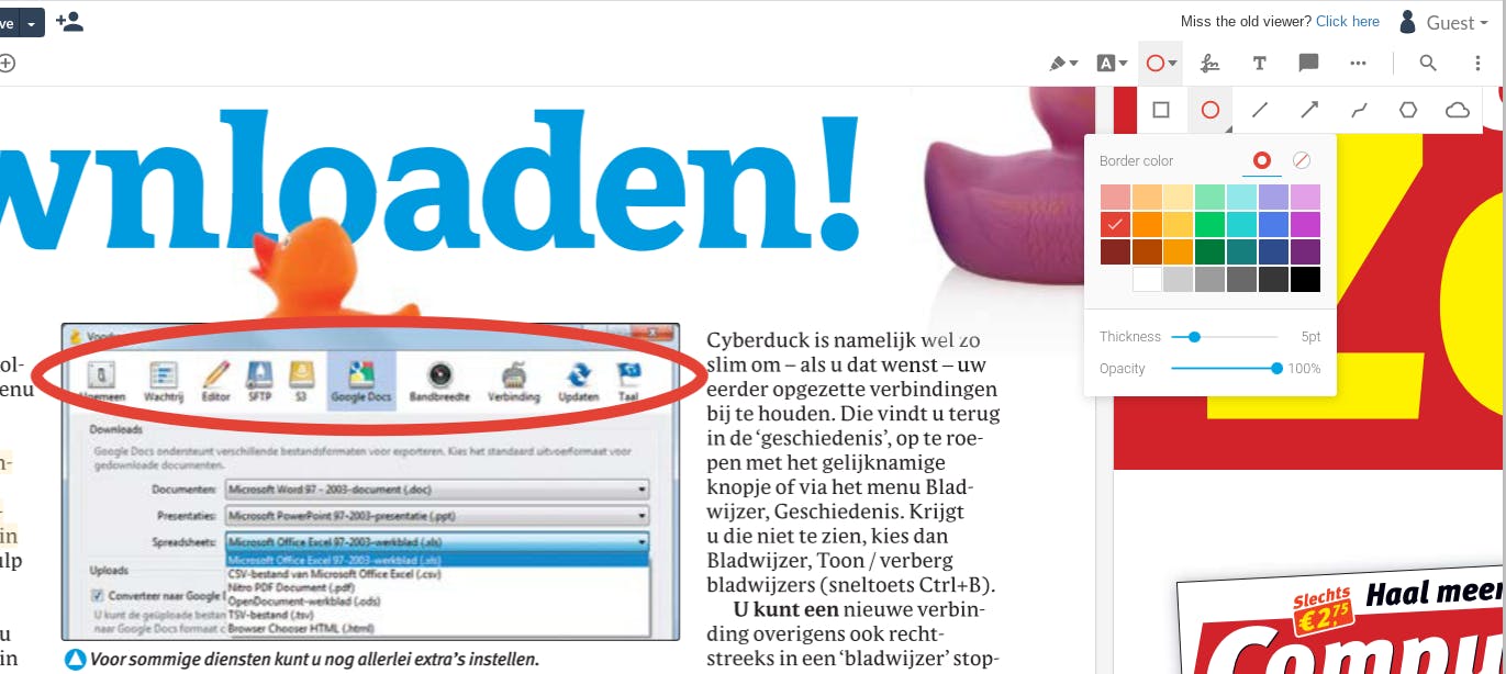 Open een exemplaar door het simpelweg naar het vak Drag and drop a file here te slepen. In ons voorbeeld pakken we een retro-Computer Idee van alweer flink wat jaartjes terug. Je ziet de pdf nu in de browser geopend staan.