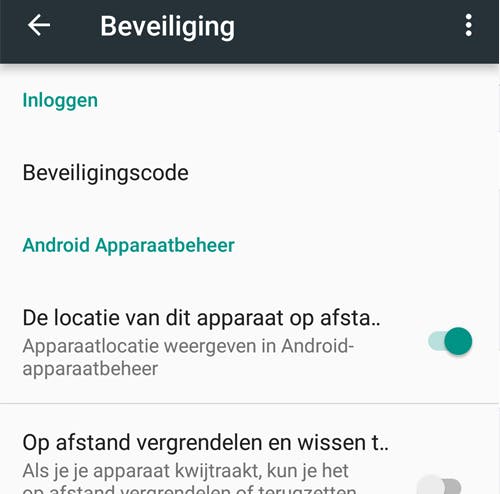 Onder Instellingen, Persoonlijk, Locatie moeten daarnaast de locatieservices van Google aanstaan.Dit is standaard het geval, maar misschien heb je het ooit eens uitgezet. Daarnaast kun je voor de zekerheid de app Lost Android installeren.