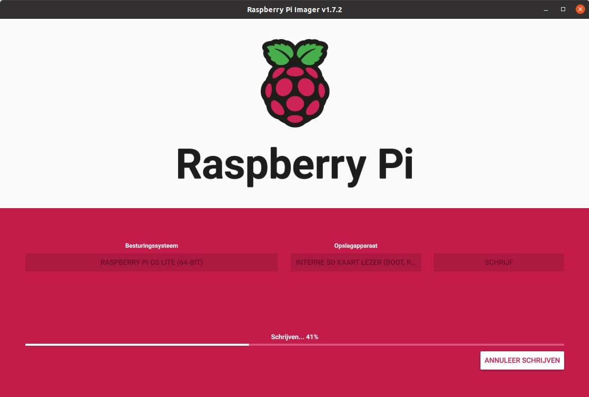 Klik vervolgens op Opslaan, kies je opslagapparaat en klik op Schrijven. Na het verifiëren van het schrijven voert Raspberry Pi Imager nu een extra stap uit: het past je instellingen aan in de juiste configuratiebestanden op het bestandssysteem van het microSD-kaartje.