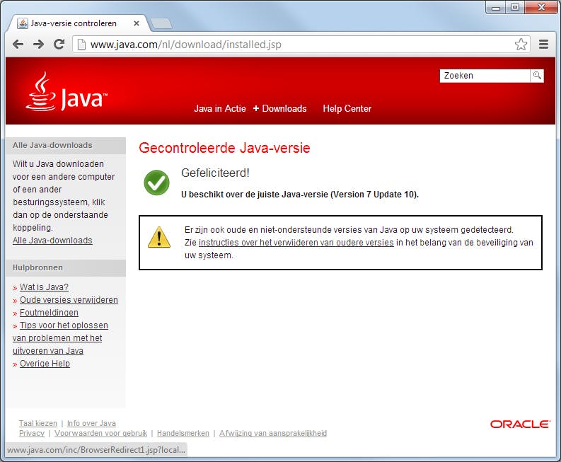 Het maakt niet uit of u met Windows, Linux of Mac werkt, zolang er maar Java is geïnstalleerd. De webpagina www.java.com/nl/download/installed.jsp vertelt u of u inderdaad over de aanbevolen Java-versie voor uw besturingssysteem beschikt. U hoeft hier slechts op de knop Java-versie controleren te drukken. Blijkt dat niet het geval, dan kunt u alsnog de recentste versie installeren www.java.com.