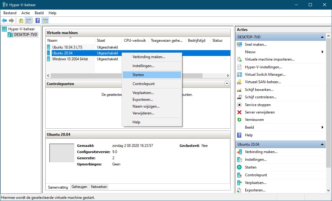 Na een herstart start je de applicatie Hyper-V beheer op.
