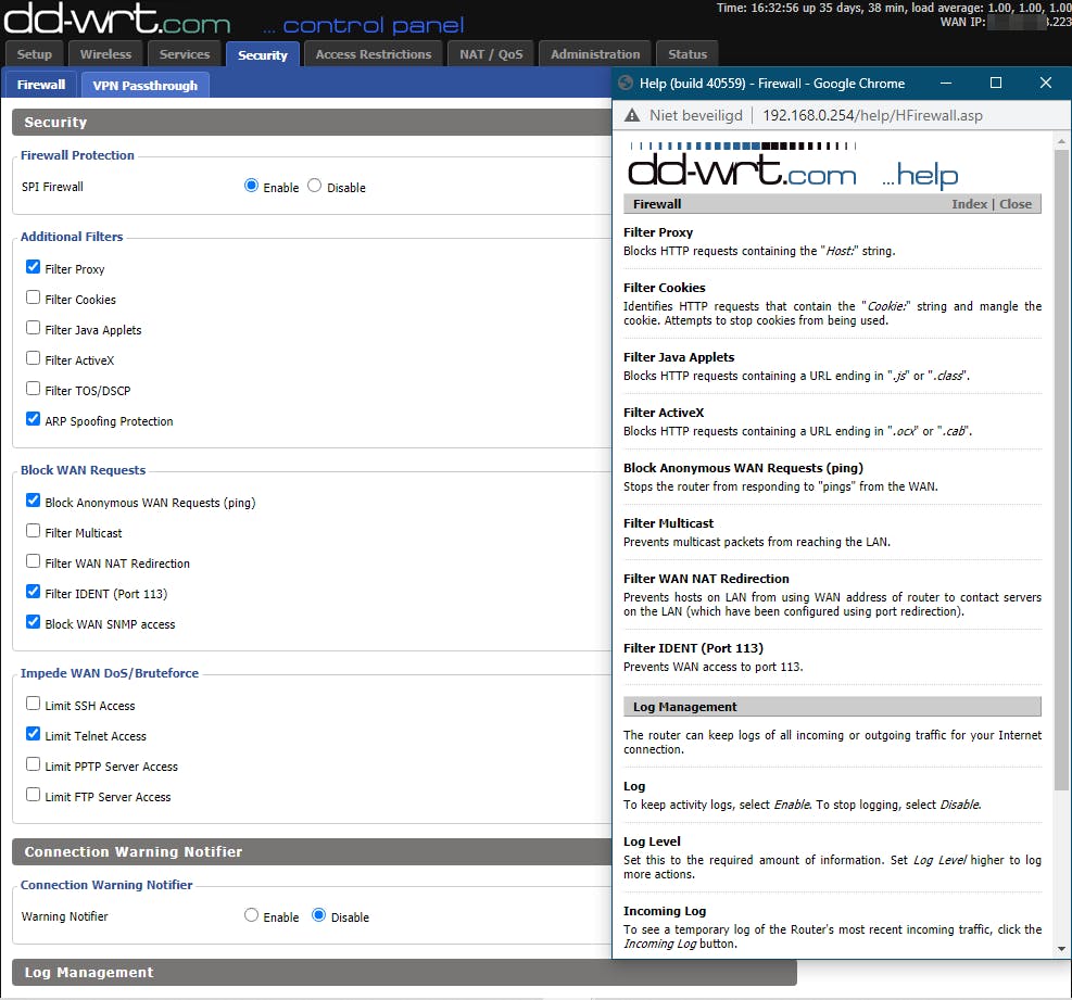 De router is al enkele keren ter sprake gekomen, wat niet vreemd is waar het de gateway van en naar je netwerk en servers is. Er noemen als eerste toch wat voor de hand liggende beveiligingsmaatregelen: