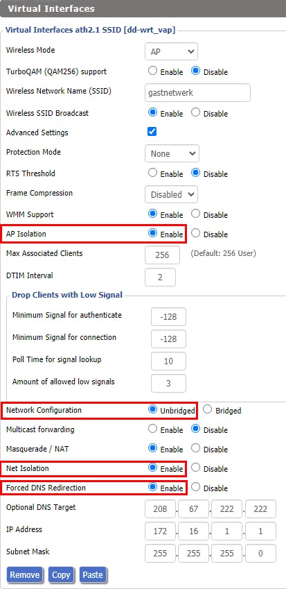 - Wireless client isolation;