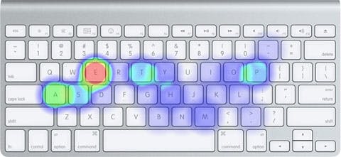 Warmtekaart van toetsaanslagen op het toetsenbord