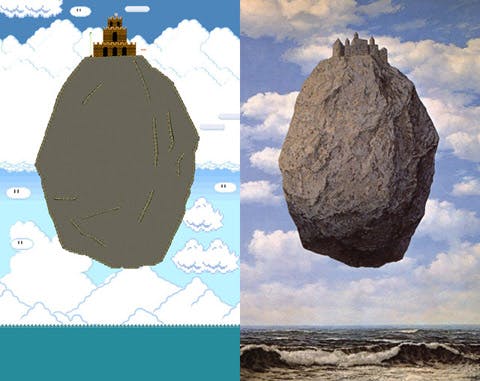 Super Mario was er al in 8-bit maar kunstenaar Racoonda heeft zich juist door echte kunst laten inspireren en als gevolg daarvan de wereld van de kleine loodgieter gebruikt om bestaande surrealistische schilderijen uit te beelden. Zie hieronder een aantal voorbeelden. Voor meer werk, bezoek zijn tumblr-pagina.
