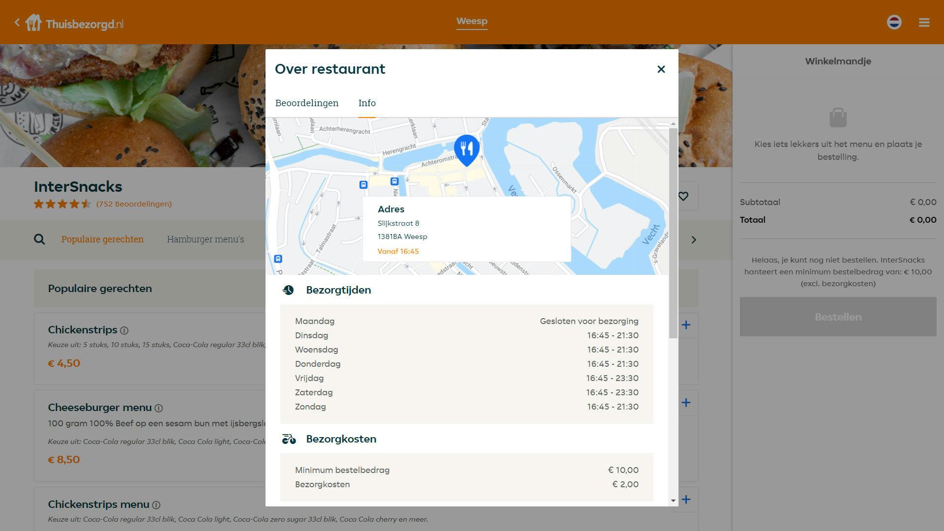 Je gaat dan naar de website, zoekt de snackbar in kwestie op (of het type voedsel waar je zin in hebt) en kiest uit wat je wil hebben. Vervolgens is het zaak dat je níet besteld via de website. Want dat betekent dat de lokale ondernemer hier in Weesp geld moet betalen, omdat iemand als besteller gebruikgemaakt heeft van een extern platform. Het is een prima en bekend verdienmodel en in de basis is er niets mis mee. Maar vooral lokale ondernemers mogen we wel een hart onder de riem steken na zo veel maanden met corona geleefd te hebben.
