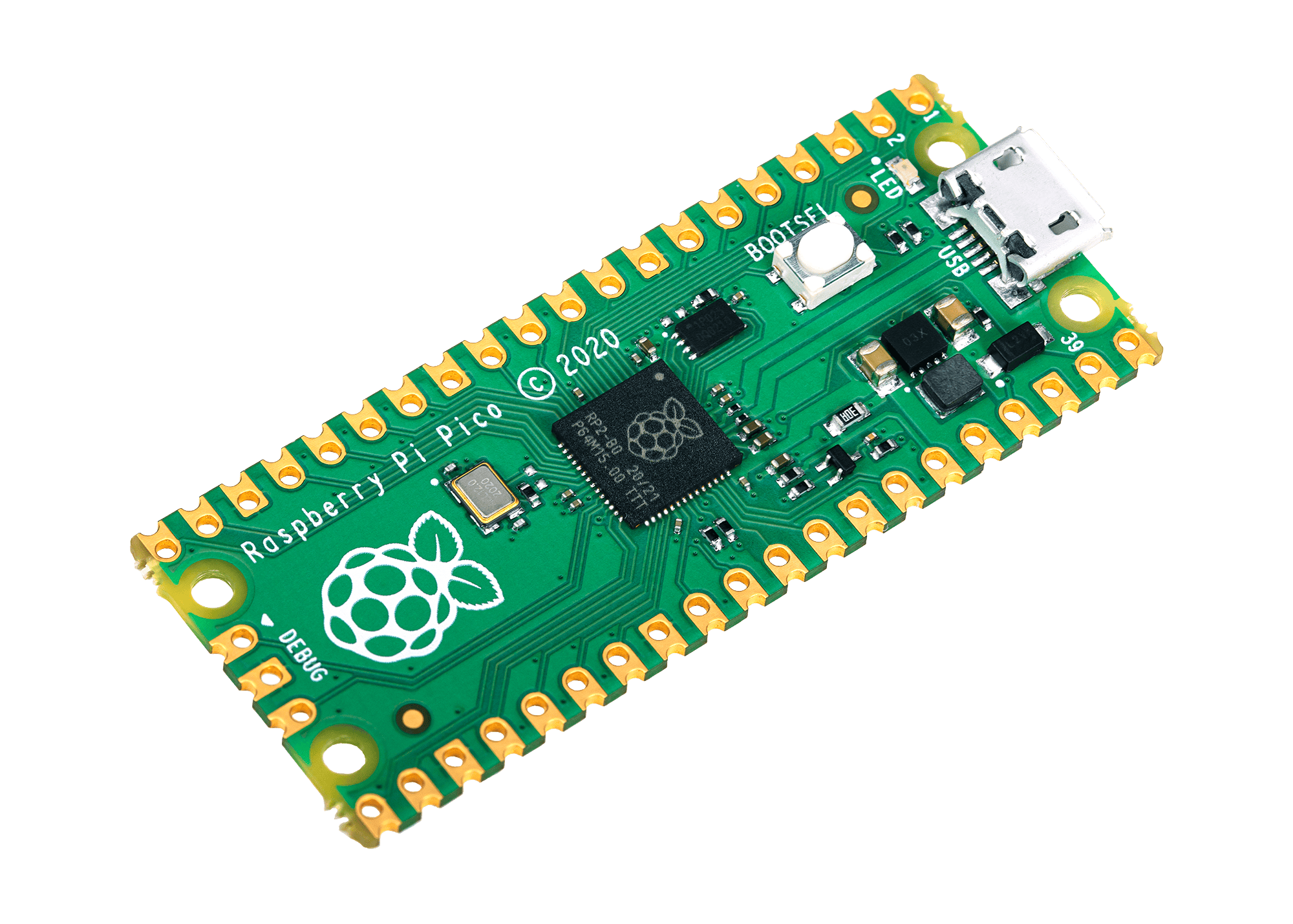 De Raspberry Pi Pico was het eerste ontwikkelbordje met de RP2040-microcontroller en is nog altijd het beste voor algemene toepassingen. Het is goedkoop (rond de 5 euro) en perfect ondersteund door allerlei ontwikkelsoftware in het RP2040-ecosysteem. Bovendien beschikt het bordje van 51 × 21 mm over 40 pinnen, waarvan 26 GPIO-pinnen die voor algemeen gebruik in te zetten zijn en 3 ADC-pinnen om analoge signalen in te lezen.
