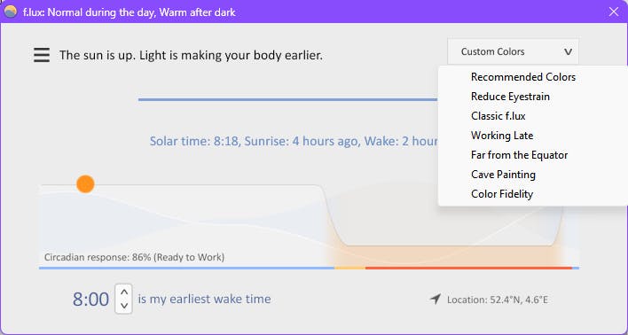 Met f.lux pas je de kleurtemperatuur van je scherm automatisch aan het tijdstip van de dag aan.