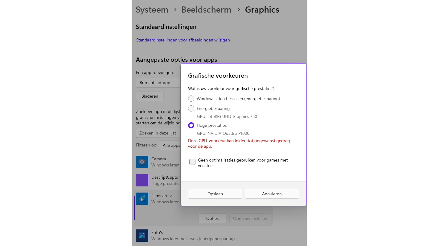 Je kunt per app de energiemodus van je gpu instellen.
