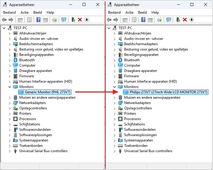 Links een generieke driver, rechts een update naar een specifiekere driver.