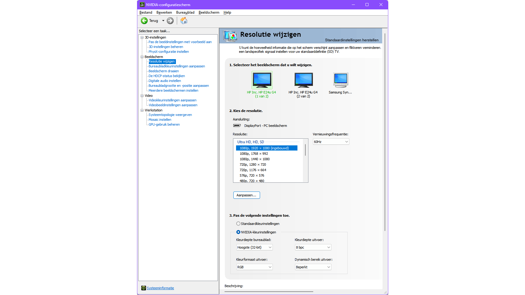 Per aangesloten monitor kun je de verversingsfrequentie aanpassen.