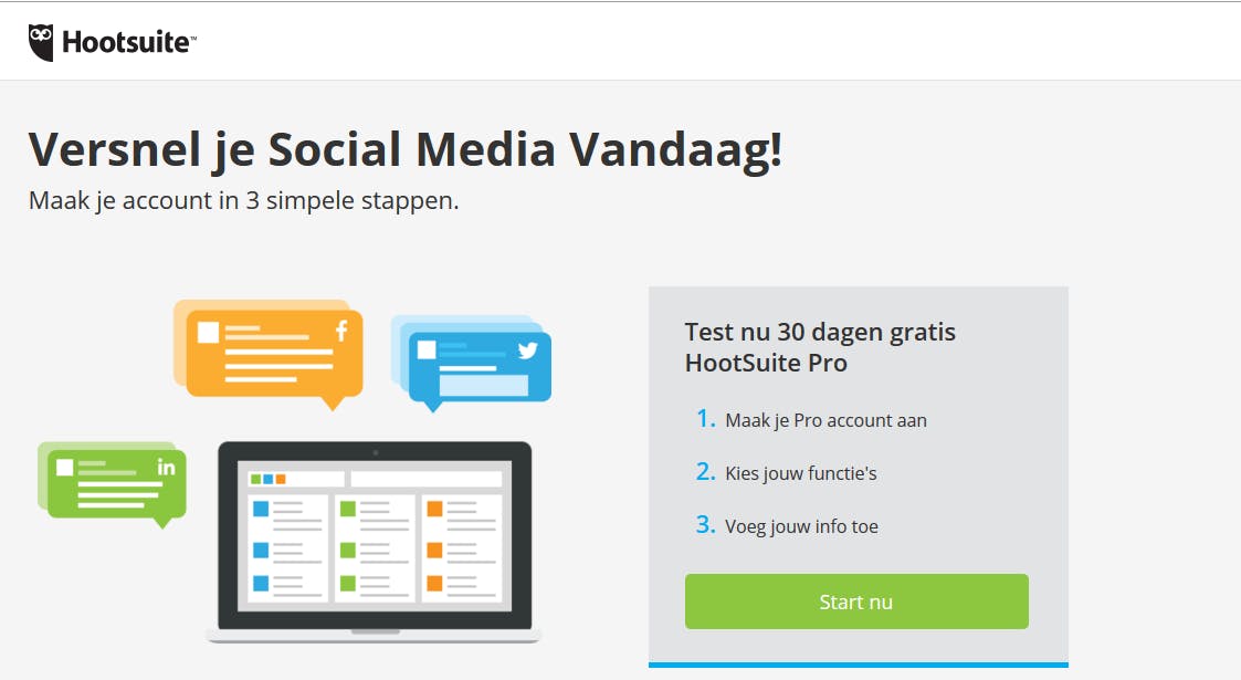 Wil je je zaak, club of bedrijf onder de aandacht wil brengen, dan moet je wel actief op Facebook, LinkedIn, Twitter en andere sociale netwerken. Via een speciaal social media dashboard kun je al deze account in één oogopslag beheren. Hootsuite is op dit moment het meest complete online dashboard en biedt alle instrumenten om het online gesprek met je relaties aan te gaan. Een goed alternatief iSocialoomph en zit je vaak op Twitter, dan moet je zeker eens kijken naar TweetDeck.