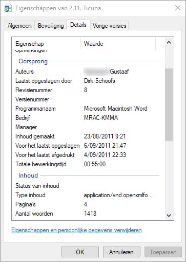 Veel van deze informatie kun je aanpassen door in het vak te klikken en te typen. Omdat het vaak om persoonlijke informatie gaat, is het mogelijk om in één keer alle detailgegevens te verwijderen via de link Eigenschappen en persoonlijke gegevens verwijderen. Misschien wil je niet dat mensen de locatiegegevens van je foto’s kunnen uitlezen in de exif-data. Selecteer eventueel meerdere bestanden tegelijk om ze in een moeite op te schonen.