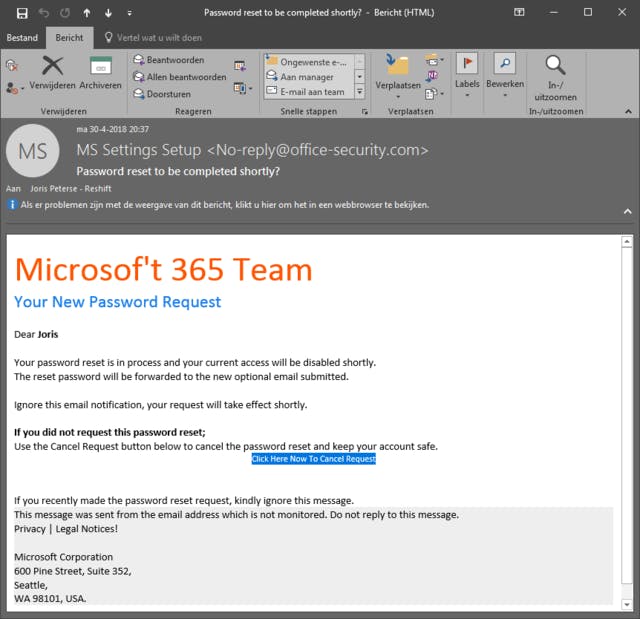Vers uit de eigen inbox: een phishingaanval op Office365.